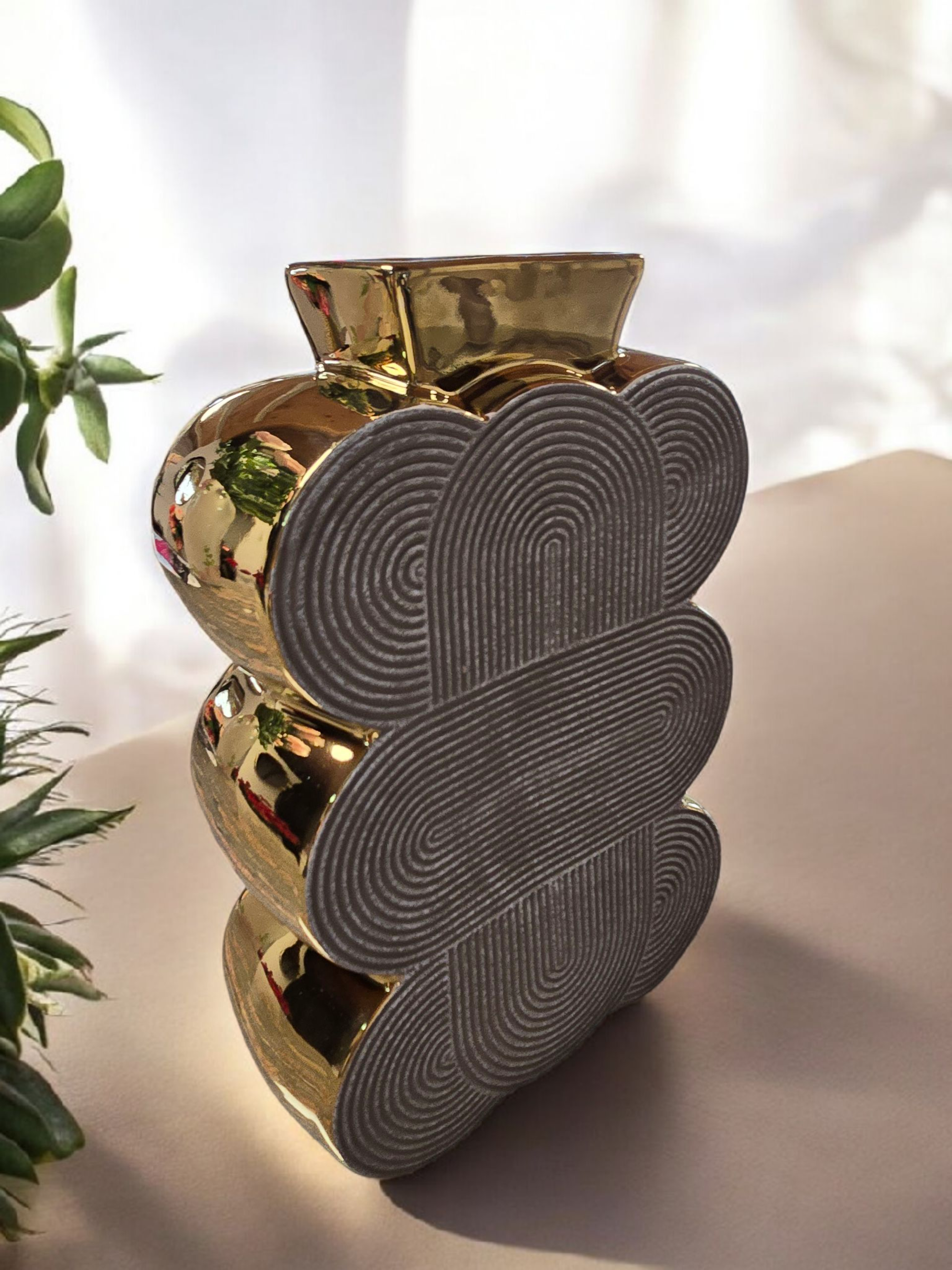 Vase en céramique en argenté où dorè